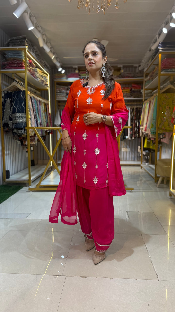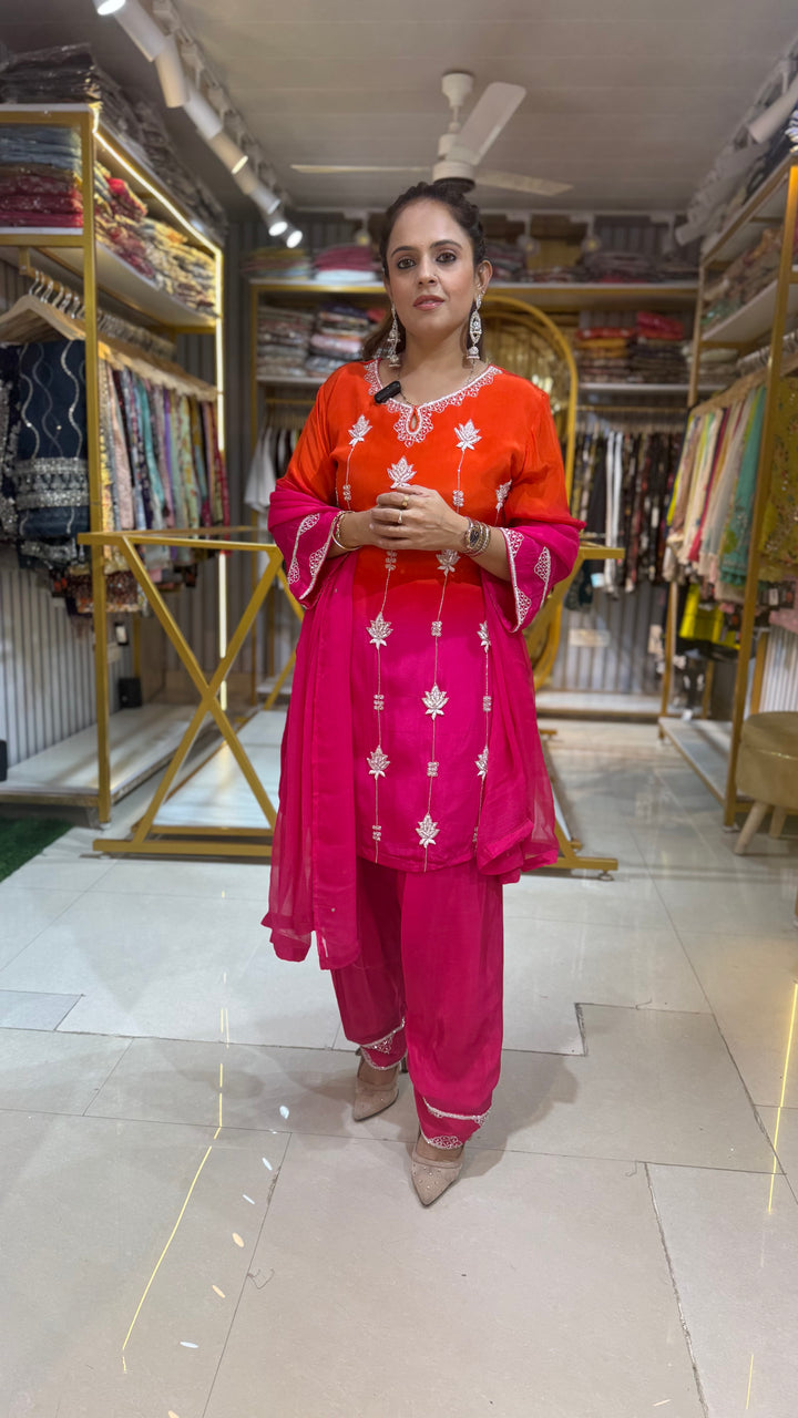 ORANGE CREPE STITCHED SUIT