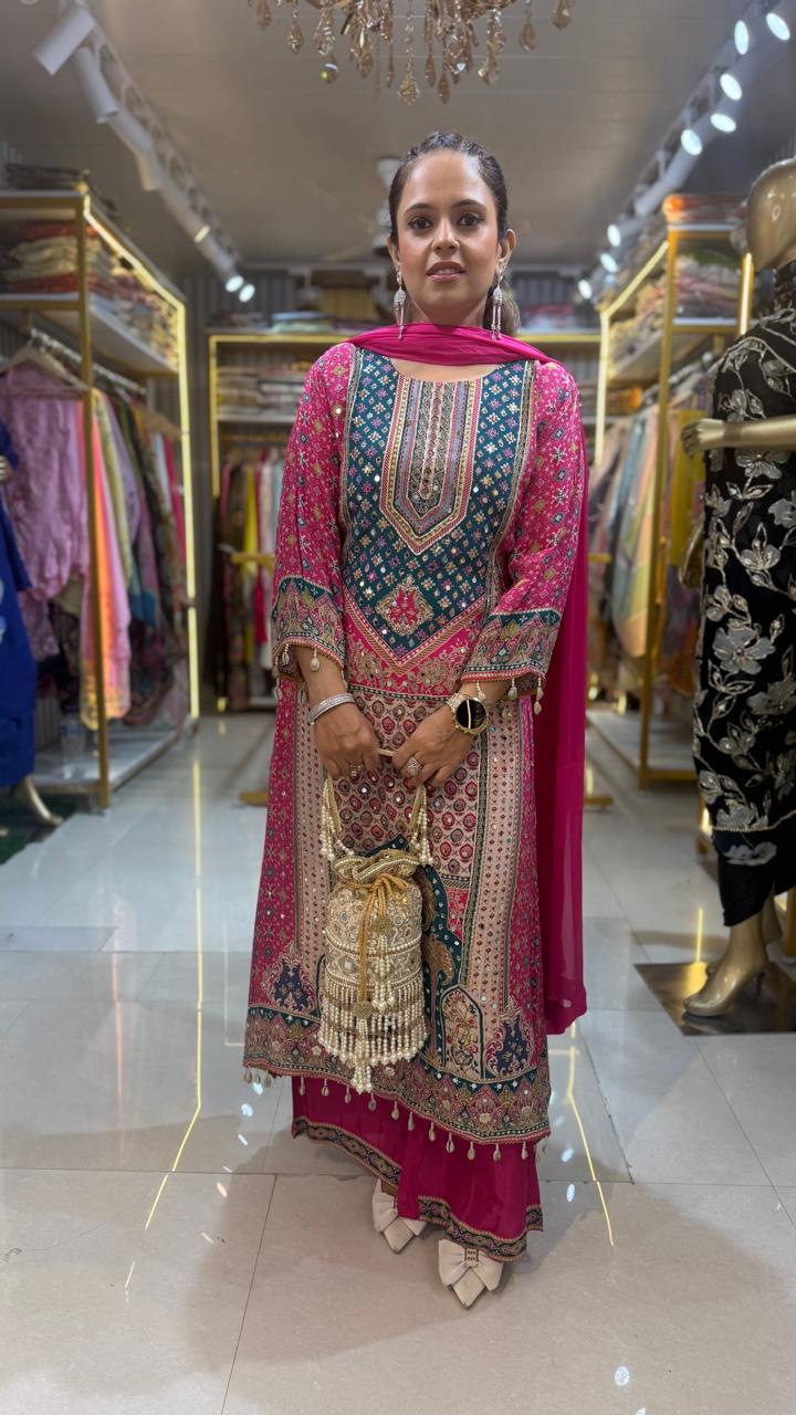 This Pure Crepe Printed Stitched Suit combines the smooth texture of pure crepe fabric with a precise tailored fit. It features a comfortable cotton silk bottom that balances softness and durability. The chiffon dupatta adds a lightweight, airy element, perfect for layered elegance. Available in sizes XL to XXXL, this suit offers a sophisticated and comfortable option for a range of body types.